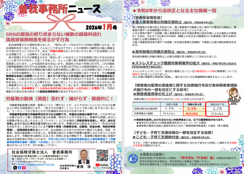 ※本記事は、千葉県最大の建設専門紙【日刊建設タイムズ紙】にコラム「社労士 曽我 浩の目(132回目・2026.1月)」として掲載されています。