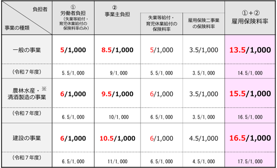 令和8年4月1日から令和9年3月31日までの雇用保険料率は以下の通りです。