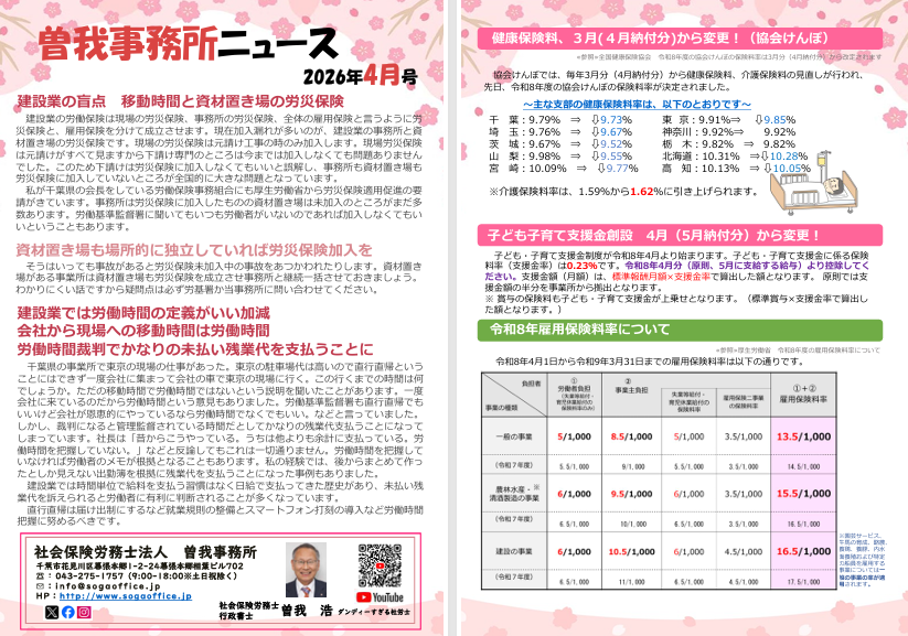 ※本記事は、千葉県最大の建設専門紙【日刊建設タイムズ紙】にコラム「社労士 曽我 浩の目(135回目・2026.4月)」として掲載されています。